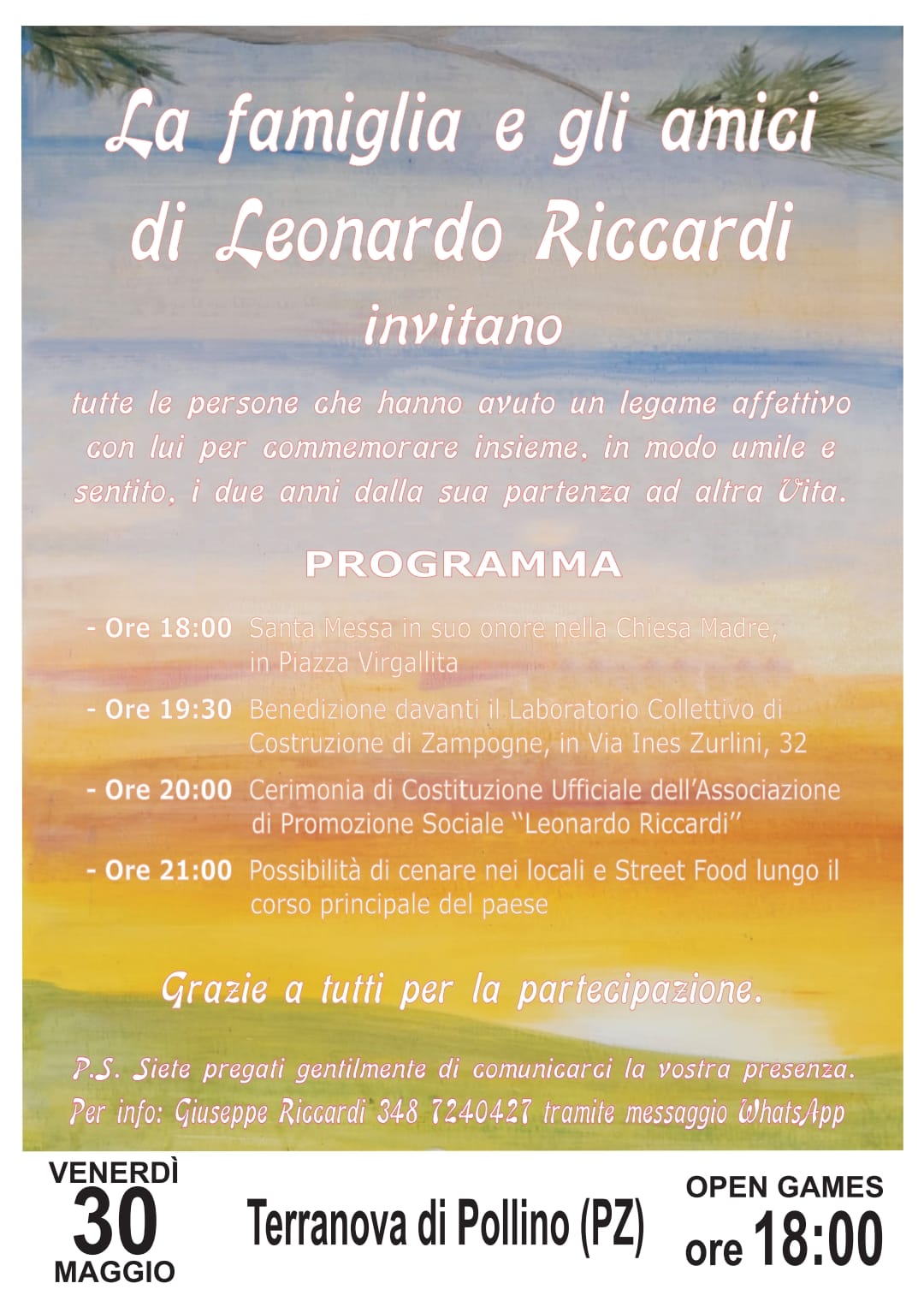 Giornata commemorativa in memoria di Leonardo Riccardi e Cerimonia dedicata alla Costituzione Ufficiale dell’Associazione di Promozione Sociale Leonardo Riccardi.